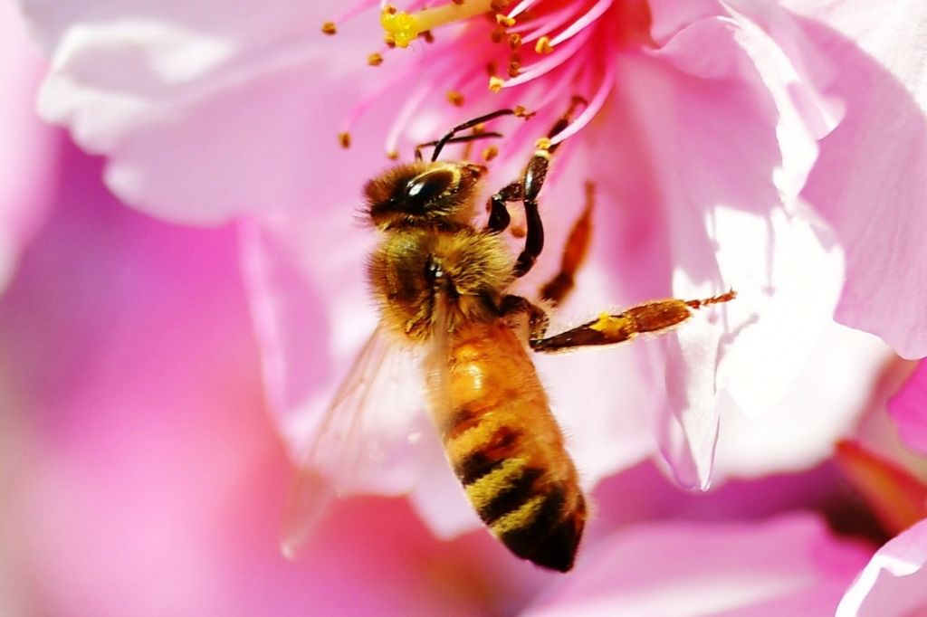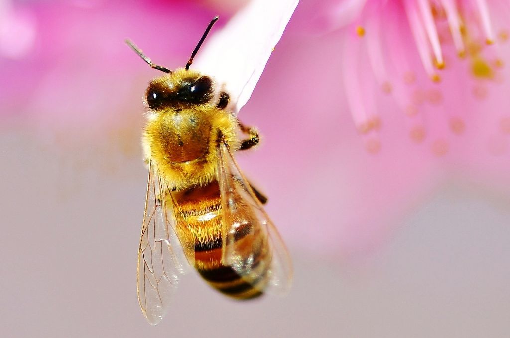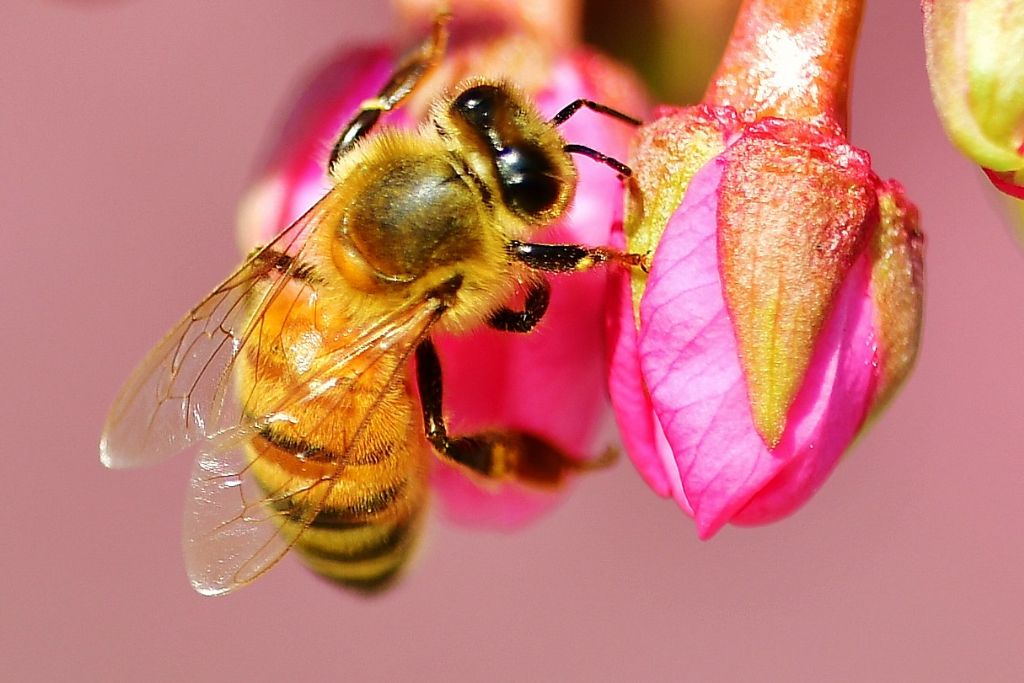 河津桜にミツバチ。
